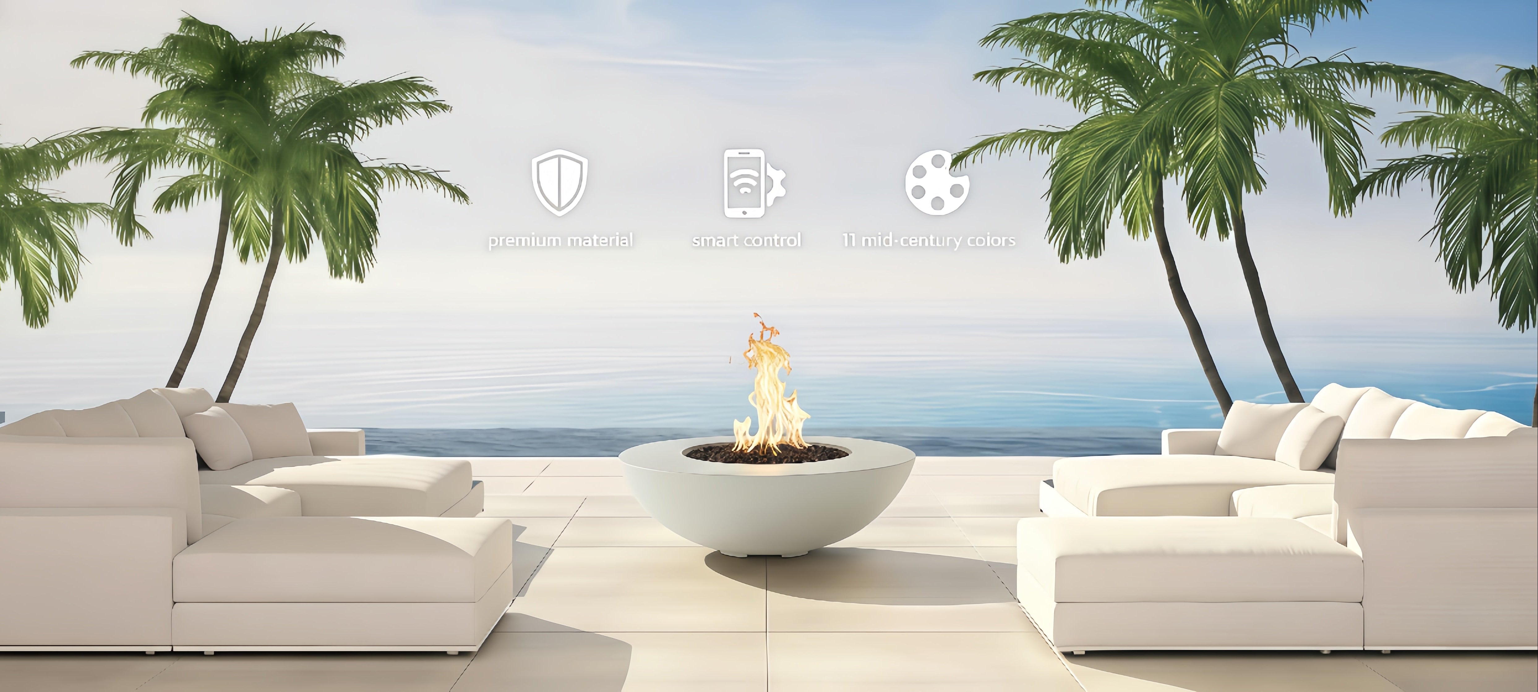 Handcrafted from Glass Fiber Reinforced Concrete (GFRC), the Oasis offers both durability and a smooth, elegant texture. Available in two refined finishes: sealed concrete in two natural tones, or our exclusive polymer coating offered in 11 mid-century modern colors. Its unique elongated bowl shape creates a dynamic flame display that’s equally inviting for intimate patios, resort lounges, or luxury residential courtyards.