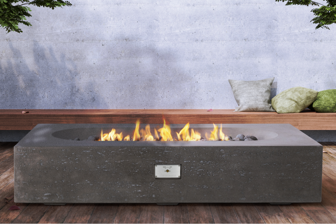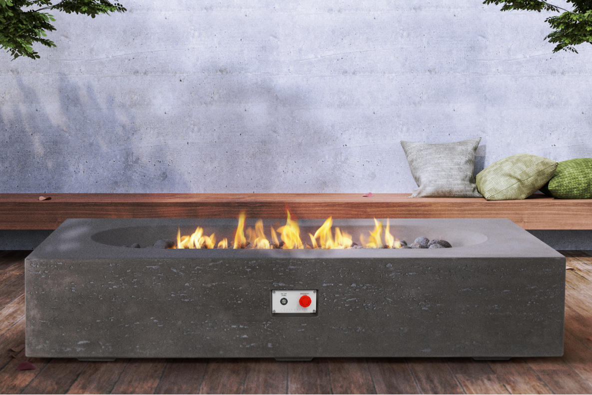 PyroMania "made-to-order" series fire tables are hand cast from top-quality Glass Fiber Reinforced Concrete (GFRC) and available in two refined finishes: sealed concrete in two natural tones, or our exclusive polymer coating offered in 11 mid-century modern colors. The burner systems are constructed from premium materials such as solid brass, 18-gauge 304 stainless steel and anodized aluminum and assembled with CSA certified parts. The proprietary burner design sheds any water that migrates into the burner ring. Equipped with whistle free gas pipes which are made of epoxy coated 304 stainless steel and fitted with solid brass connections. They come with 2 easily convertible fuel types (natural gas or propane) and 3 ignition types to meet diverse needs of your project. If you choose a push button ignition or APPE, it's also packed with safety features flame recognition to ensure that the system shuts down (if unable to automatically re-light first with the pilot installed) in case of wind blow-out.